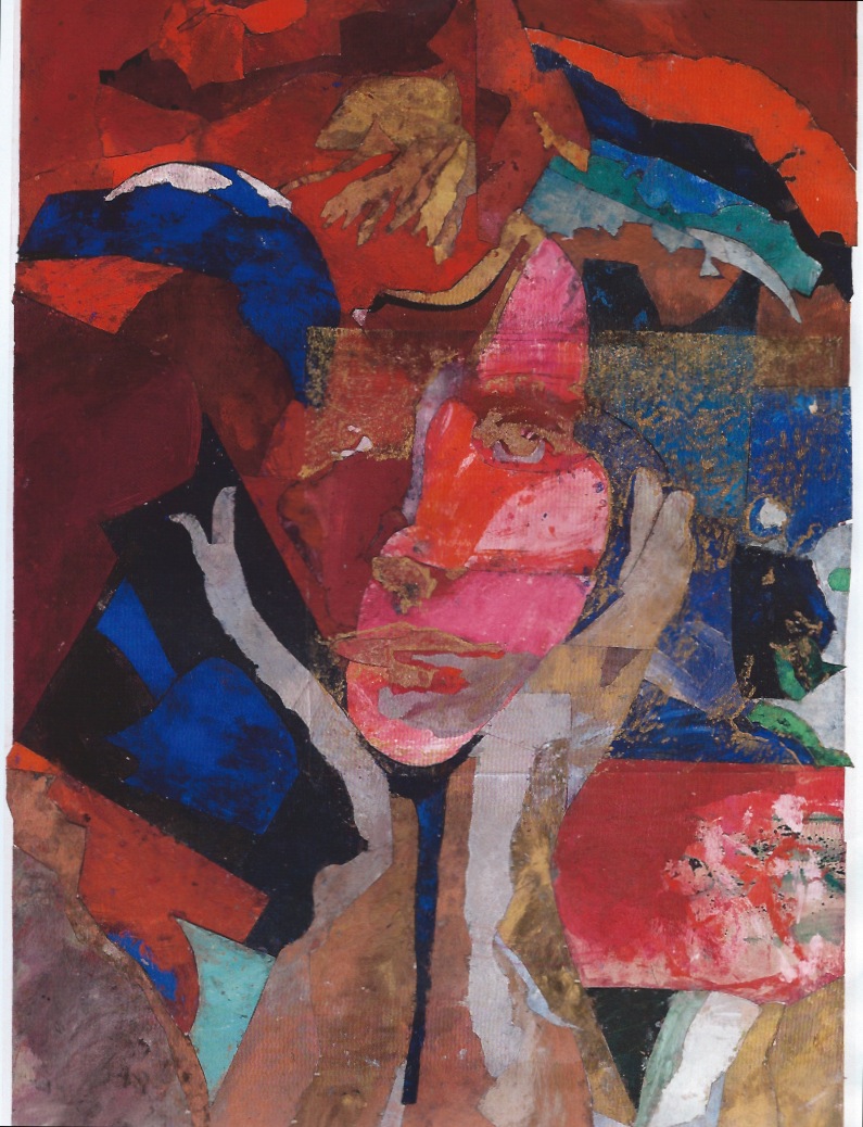 Technique: Mine de plomb, acrylique, pigments et découpage sur carton