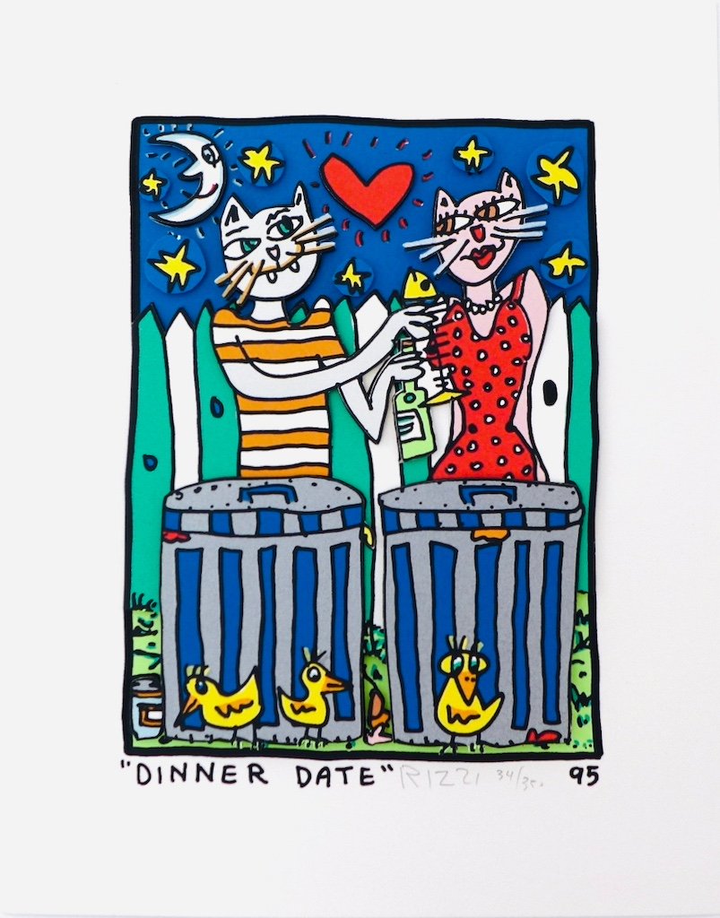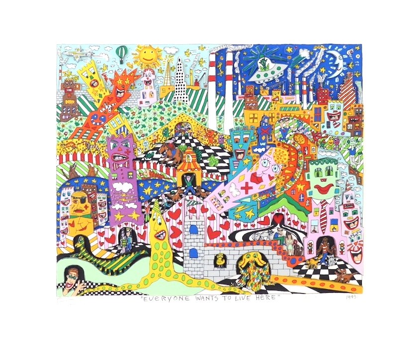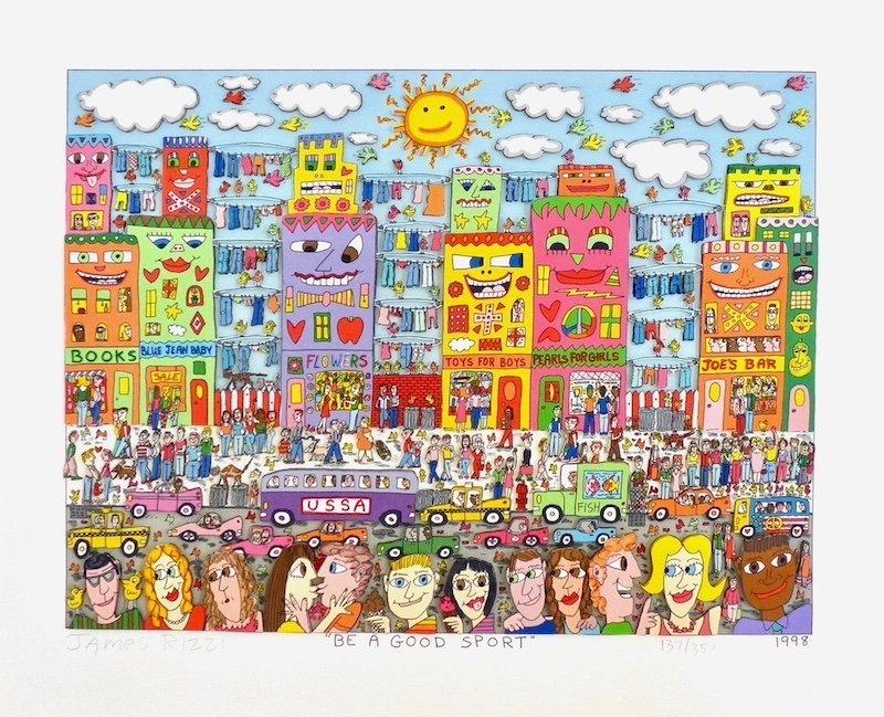 All 3D prints and paintings presented are vintage, signed and numbered by James Rizzi.